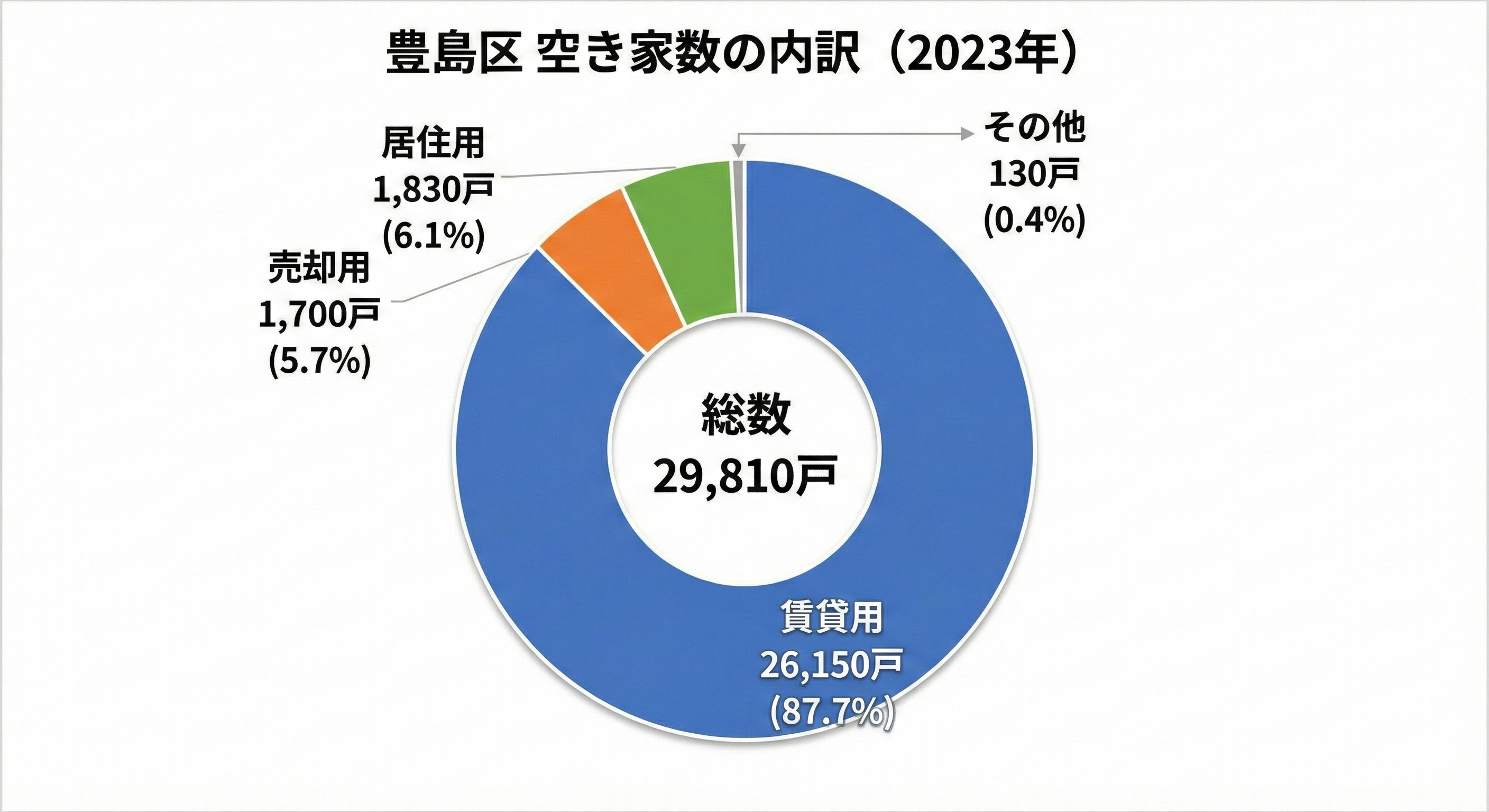 豊島区の空き家総数29,810戸の内訳を見ると、空き家の約9割(87.7%)が賃貸用です。
