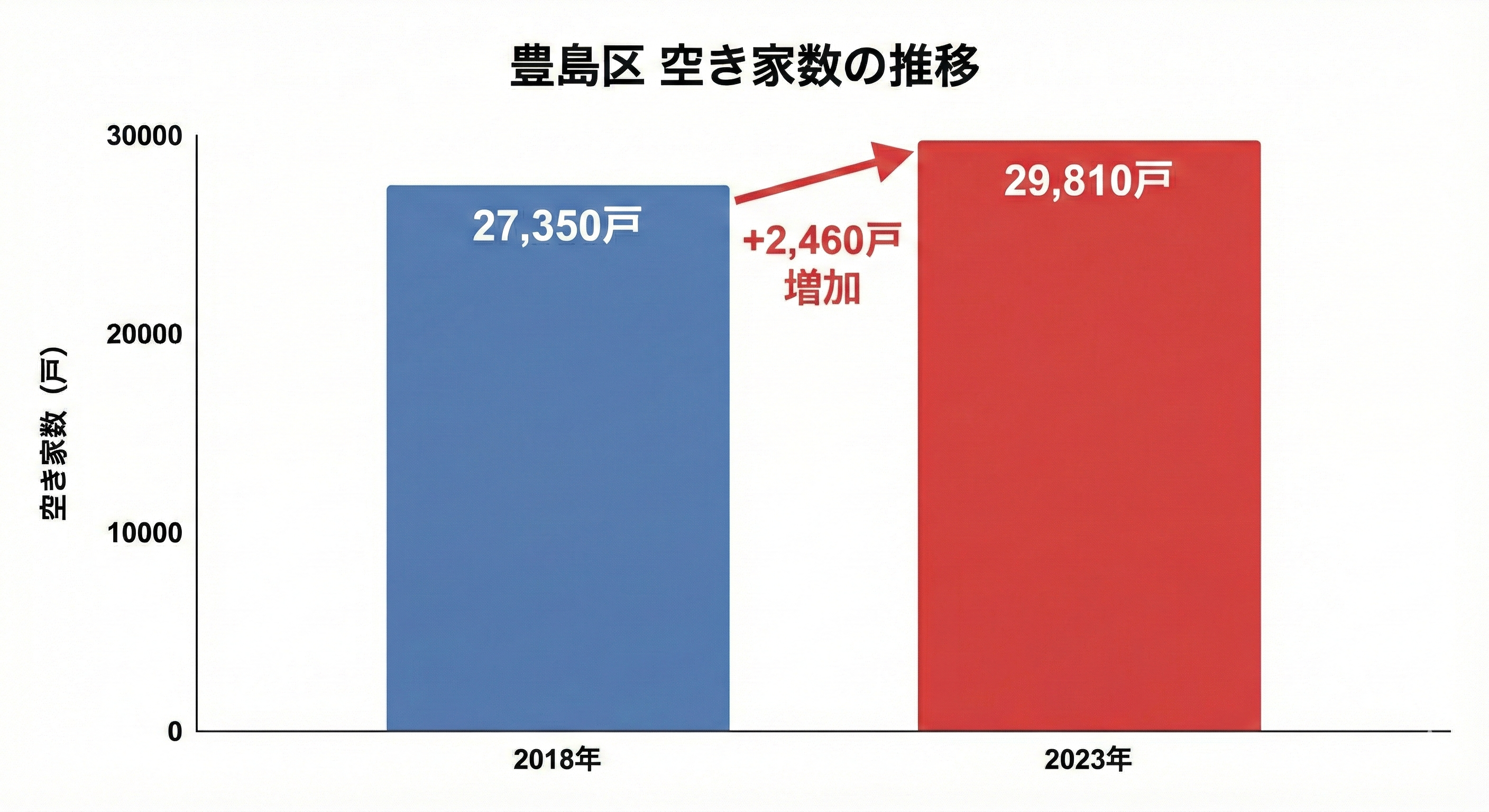 5年前の2018年時点では27,350戸であったため、わずか5年間で2,460戸も増加していることがわかります。このように空き家が増加していく状況は、防災や防犯の観点からも課題となっています。
